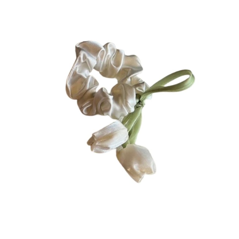 کش مو ساتن کرم با گل سفید